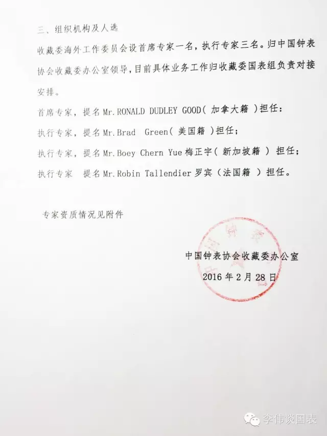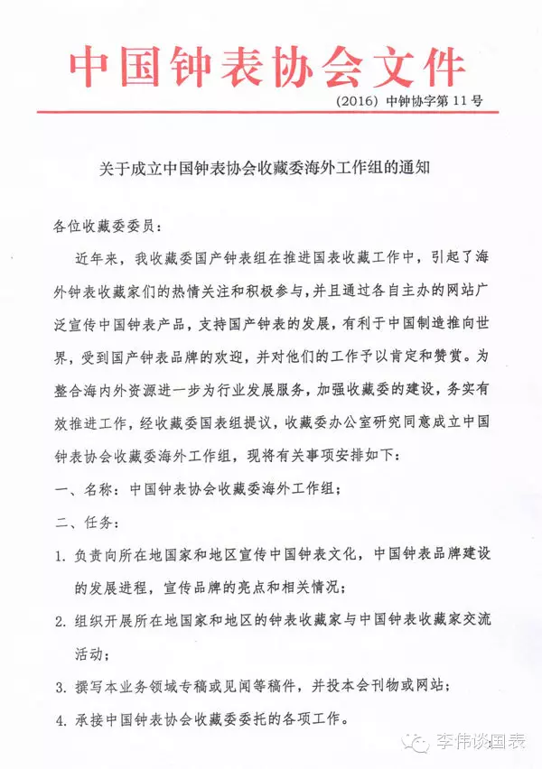 《关于成立中国钟表协会收藏委海外工作组的通知》(2016)中钟协字第11号
