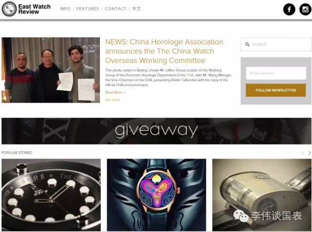 (www.eastwatchreview.com)是目前第一个也是唯一一个专注于中国手表业的英 文网站。它志在于向西方的手表爱好者们对中国的手表世界给予正面的引领和介绍。EWR 的内容 主要集中在产品点评,轶事分享,行业动态,事件讲述,图片展示等等。 创建时间:2015 年 5 月 4 日访客数量: 截至 2015 年 12 月,月访客已超过 4000 人 文章总数:截至目前已发布超过 70 篇 初衷 EWR 的创办者Brad Green 本人就是一个手表超级发烧友。他对于现代手表的认知是在对一些主流 手表网站的研究中慢慢积累下来的,其中就有 www.ablogtowatch.com 和 www.hodinkee.com 这两个业内知名的网站。对于西方那些真正的手表发烧友来说,这些网站是他们可靠的知识和信息来 源。Brad 在对手表业不断研究的过程中发现,中国手表品牌面向西方公众的信息窗口是缺失的,他也就 由此萌生了创办 EWR 的念头。Brad 希望通过 EWR 这个窗口能够纠正西方公众对中国手表 的一些错误认知和负面评价。 现状 就当前来说,Brad 能够分配在 EWR 上的时间是有限的。他目前有一份全职工作,主要职责为市场营销和平面设计,此外他还要花费大量的时间在香港和广州之间的往返交通上,因为他同时也是 一个“周末全职爸爸”。但即便如此,基于对这个行业的热爱他还是坚持挤出一定的时间以保证 每个星期有 1 到 2 两篇新文章发布在 EWR 上。Brad 一直希望并计划在这未来一年内把对 EWR 的运营转变成他的全职工作,如果能够成功转换,他将有充足的时间和精力去获取更多的信息和内容并保证一天至少一篇的文章发布量,这对保证 网站访客数量的持续增长是很有必要的。EWR上所发布的文章类型您可以在下面的内容中获知一 二。 到现在为止 Brad 的精力主要投放在与中国的手表企业建立友好的合作关系上,这些手表企业在 此之前对一些专业手表网站像 EWR 或甚至是刚刚提到的那些月访客过百万的网站都知之甚少。 和这些手表企业的良好互动可以为 EWR 提供持续的信息源从而使网站的内容得到充实,基于此, 我们下一步的计划将是逐步增加西方手表爱好者的访问数量。