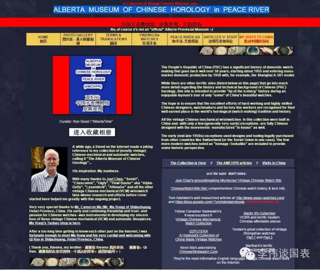 Ron Good长期从事中国钟表收藏与研究,在国际钟表论坛与自己的中国钟表收藏网站将中国钟表的历史与发展现状传播给国外的众多钟表爱好者。通过他的工作,不断有国外钟表爱好者加入到了我们的“国表海外兵团”。